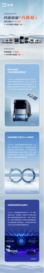 伴隨新能源商用車(chē)行業(yè)10月滲透率達(dá)到14.5%,新能源商用車(chē)賽道價(jià)值逐步凸顯。遠(yuǎn)程新能源商用車(chē)將充分發(fā)揮行業(yè)先發(fā)布局優(yōu)勢(shì),秉承“創(chuàng)造智慧互聯(lián)、引領(lǐng)綠色商用”的品牌愿景,推動(dòng)中國(guó)物流行業(yè)朝著智慧集約型、信息共享型、生態(tài)共創(chuàng)型新物流時(shí)代進(jìn)發(fā)。