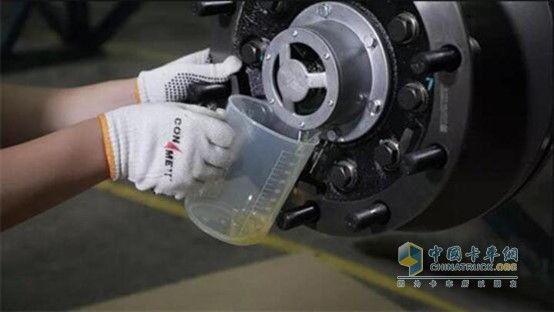 雖然部分品牌的脂潤滑輪端同樣可以實(shí)現(xiàn)免維護(hù),但是相比康邁的有潤滑免維護(hù)輪端,脂潤滑輪端存在需要定期拆解檢查,并且維護(hù)耗時(shí)的問題。當(dāng)卡友發(fā)現(xiàn)康邁免維護(hù)輪端潤滑油減少或變質(zhì)時(shí),只需要將注油螺絲擰下,放盡油液并補(bǔ)充油液即可,不需要拆掉輪胎和輪端,大幅節(jié)省了維修保養(yǎng)的時(shí)間,全面提升車輛的出勤率和運(yùn)輸效率。