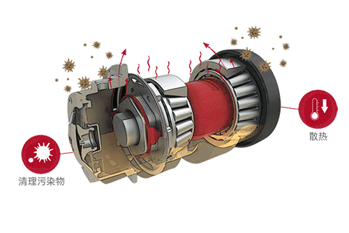 康邁輪端軸承采用的是齒輪油潤滑,潤滑油具有更好的流動性,不僅能使?jié)L子、滾道得到充分的潤滑,而且能啟到輔助散熱的作用。油潤滑輪端對油封、端蓋的性能,軸承游隙的控制要求更加嚴格。因此除了核心的技術(shù),高品質(zhì)的零部件、嚴格的質(zhì)量管控也是保障輪端安全的關(guān)鍵環(huán)節(jié)。