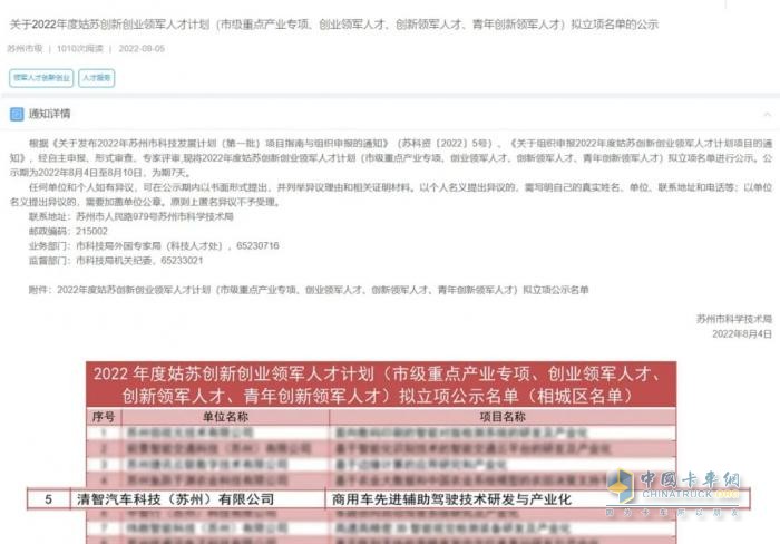 姑蘇創(chuàng)新創(chuàng)業(yè)領(lǐng)軍人才計(jì)劃項(xiàng)目是蘇州市招才引智的核心人才政策,更是蘇州市引進(jìn)海內(nèi)外高層次人才資助力度最大、影響力最強(qiáng)的一項(xiàng)人才專項(xiàng)。項(xiàng)目面向世界科技發(fā)展前沿和全市產(chǎn)業(yè)重大發(fā)展戰(zhàn)略需求,重點(diǎn)支持在電子信息、裝備制造、生物醫(yī)藥、先進(jìn)材料等四大產(chǎn)業(yè)集群開(kāi)展新技術(shù)、新產(chǎn)業(yè)、新業(yè)態(tài)、新模式創(chuàng)新創(chuàng)業(yè)的科技領(lǐng)軍人才、團(tuán)隊(duì)。姑蘇創(chuàng)新創(chuàng)業(yè)領(lǐng)軍人才已成為蘇州市科技創(chuàng)新、先導(dǎo)產(chǎn)業(yè)發(fā)展的重要生力軍。截至目前,蘇州市超過(guò)60%的科創(chuàng)板上市企業(yè)、獨(dú)角獸培育企業(yè)由科技領(lǐng)軍人才創(chuàng)辦(數(shù)據(jù)來(lái)源:中國(guó)證券網(wǎng))。2022年8月,清智科技由蘇州市科學(xué)技術(shù)局正式認(rèn)定為“姑蘇創(chuàng)業(yè)領(lǐng)軍人才企業(yè)”。