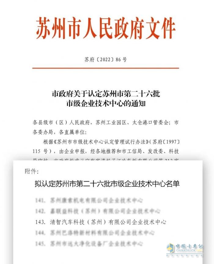 江蘇省及蘇州市對(duì)創(chuàng)新能力強(qiáng)、創(chuàng)新機(jī)制好、引領(lǐng)示范作用大、信用狀況良好、符合條件的企業(yè)技術(shù)中心予以認(rèn)定,并優(yōu)先給予項(xiàng)目扶持、科技計(jì)劃、稅收優(yōu)惠等方面的政策支持,鼓勵(lì)引導(dǎo)行業(yè)骨干企業(yè)帶動(dòng)產(chǎn)業(yè)技術(shù)進(jìn)步和創(chuàng)新能力提高。2022年11月,清智科技由蘇州市人民政府正式認(rèn)定為“蘇州市市級(jí)企業(yè)技術(shù)中心”。