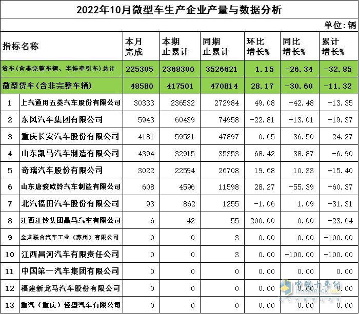 2022年10月微卡企業(yè)產(chǎn)量與數(shù)據(jù)分析