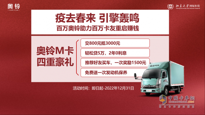 物流運(yùn)輸市場(chǎng)的快速恢復(fù),必將帶動(dòng)卡友們旺盛的購(gòu)車需求,而受三年疫情所累,卡友們的手頭并不寬裕。奧鈴想卡友所想,急卡友所急,推出了優(yōu)惠力度空前的購(gòu)車促銷及金融政策。