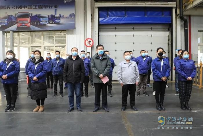 福田汽車諸城廠區(qū)黨委書記王志華致辭。他表示,在減碳、脫碳成為全球共識的大背景下,商用車新能源化,已成為各大車企爭相搶占的新賽道、新高地。一直以來,瑞沃品牌市場占有率多年來持續(xù)保持行業(yè)第一,處于市場絕對領(lǐng)導(dǎo)地位。在新能源化的浪潮之下,我們推出工程車新能源車型,再一次引領(lǐng)行業(yè)的發(fā)展,必將推動工程車進(jìn)入新能源變革時代。王志華書記強調(diào),今年是福田汽車“二次創(chuàng)業(yè)”的元年,敢闖善創(chuàng)是全體福田人的優(yōu)良傳統(tǒng)基因,尤其是善于在困境、逆境中殺出一條血路。當(dāng)前,疫情形勢仍然嚴(yán)峻,希望全體員工在做好個人防護的前提下,進(jìn)一步堅定信心、攻堅克難,以更加飽滿的熱情,迎接2023年旺季生產(chǎn),以良好的精神狀態(tài)和身體素質(zhì),全力打贏2023年旺季生產(chǎn)攻堅戰(zhàn)。