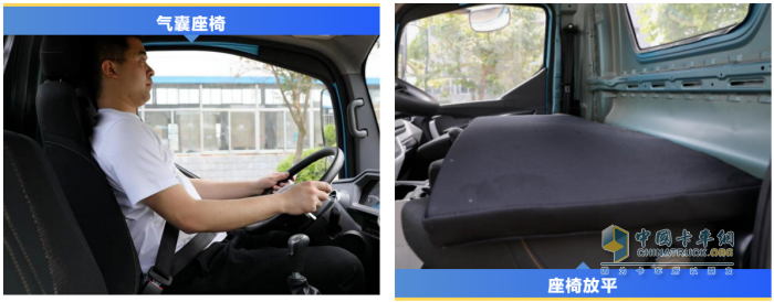 座椅靠背:可完全放平并標(biāo)配臥鋪墊,單排可實(shí)現(xiàn)單人平躺,旅途中方便司機(jī)改裝床鋪進(jìn)行休息;