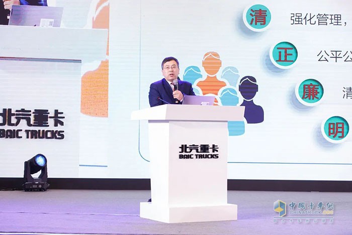 同時,北汽重卡黨委副書記、紀(jì)委書記、工會主席陳青波則分享了北汽重卡公開透明、精準(zhǔn)監(jiān)督的廉政采購體系,強(qiáng)調(diào)只有供貨質(zhì)量是我們績效評價的唯一標(biāo)準(zhǔn),也是我們優(yōu)勝劣汰供應(yīng)商的唯一標(biāo)準(zhǔn),清正廉明的商業(yè)環(huán)境將保障北汽重卡戰(zhàn)略的全面落地,實(shí)行各項(xiàng)精準(zhǔn)目標(biāo)與績效評定均依規(guī)公開透明管理確保高質(zhì)量等。