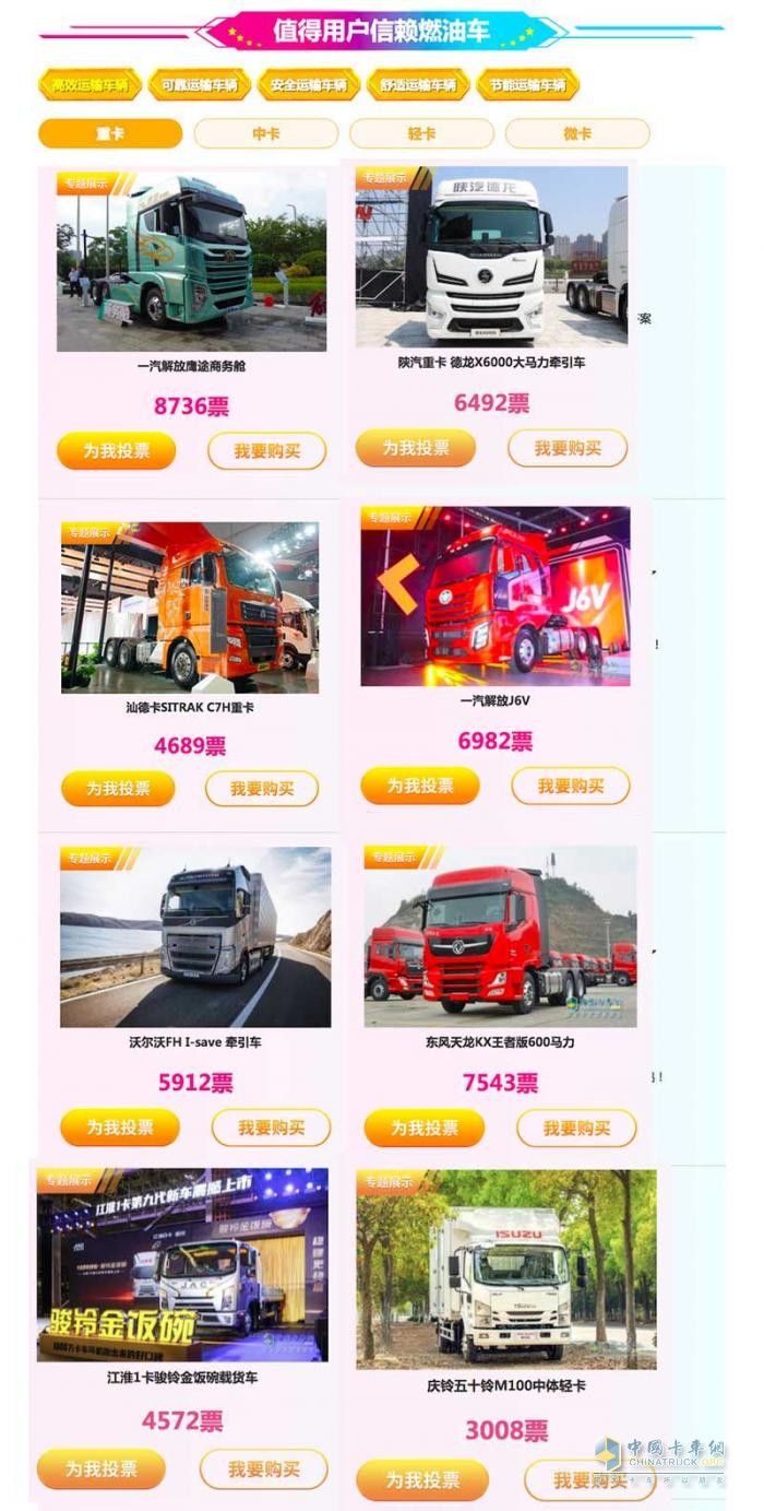 在輕卡領(lǐng)域,同樣有多款產(chǎn)品得到了用戶的舉薦參與到了評選中來,包括福田系各品牌輕卡、江淮輕卡、東風(fēng)多利卡、慶鈴五十鈴等,為城市配送輸送了更多值得信賴的力量。