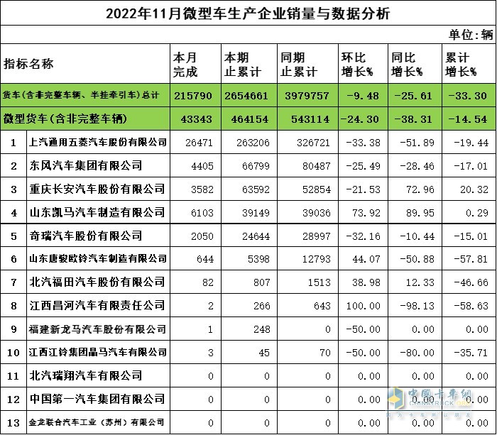 2022年11月微卡企業(yè)銷量與數(shù)據(jù)分析