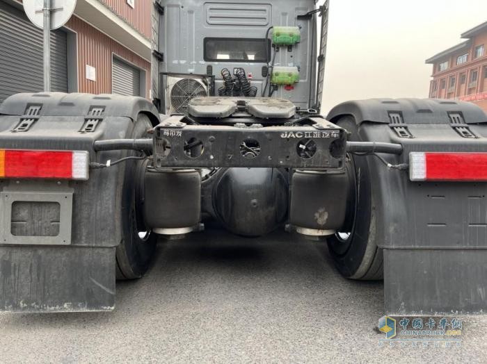 整車后橋采用了氣囊懸架,自重11噸,總質(zhì)量25噸。