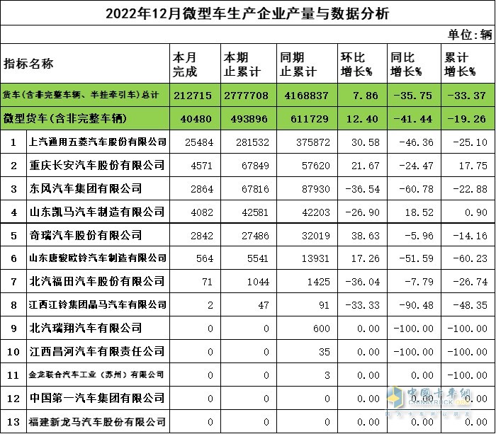 2022年12月微卡企業(yè)產量與數(shù)據(jù)分析