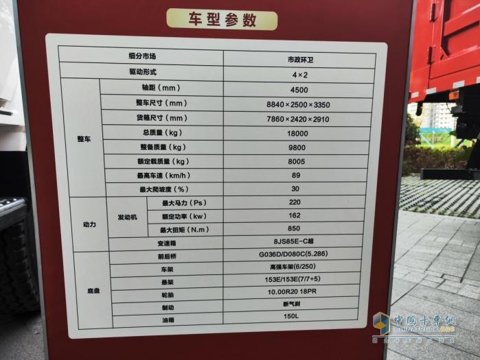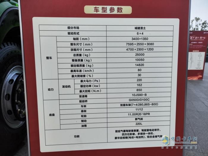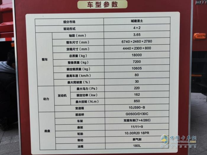 動(dòng)力搭配: 220大馬力發(fā)動(dòng)機(jī)+8擋變速器+8T后雙驅(qū)動(dòng)橋+10.00R20輪胎, 高性價(jià)比底盤配置、經(jīng)濟(jì)更可靠。