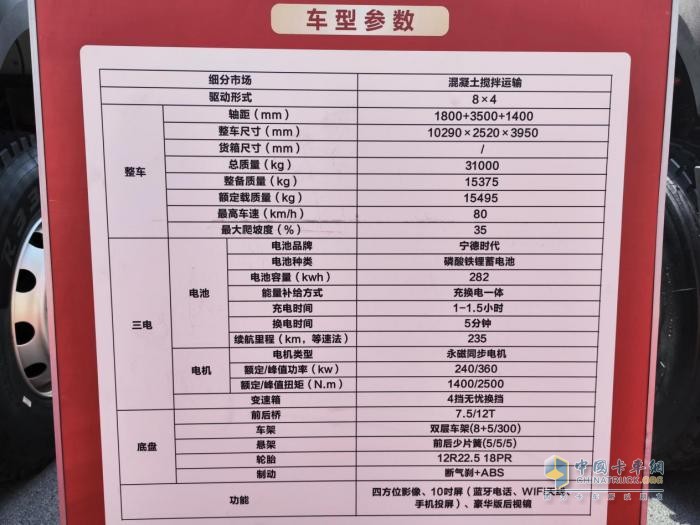 重汽豪沃8X4充換電一體攪拌車及參數(shù)