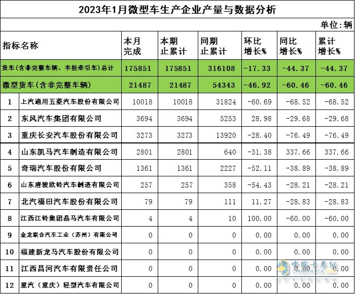 2023年1月微卡企業(yè)產量與數(shù)據(jù)分析