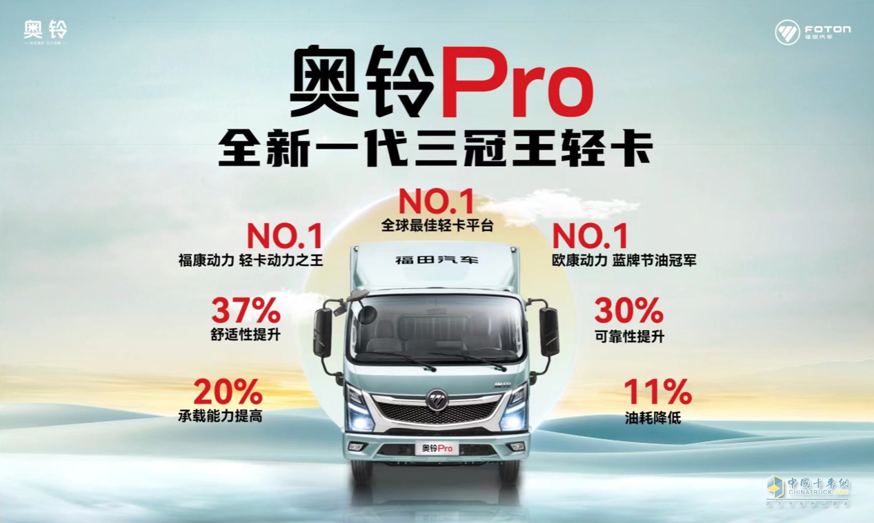 發(fā)布會(huì)上亮相的重磅產(chǎn)品——奧鈴Pro,是基于百萬奧鈴大數(shù)據(jù),鏈合全球領(lǐng)先科技,融匯中國商用車企業(yè)集體智慧結(jié)晶,全新推出的奧鈴第五代輕卡平臺(tái),其定位為“全新一代三冠王輕卡”,即制造冠軍、品質(zhì)冠軍和單一品牌銷量冠軍,以“冠軍品質(zhì)”為用戶提供高品質(zhì)產(chǎn)品。