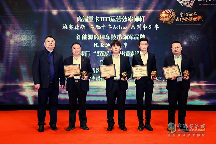 作為技術(shù)標(biāo)桿代表,梅賽德斯-奔馳卡車Actros系列牽引車獲“高端重卡TCO運(yùn)營(yíng)效率標(biāo)桿”稱號(hào),比亞迪商用車獲“新能源商用車技術(shù)領(lǐng)軍品牌”,中車電動(dòng)獲“踐行‘雙碳’突出貢獻(xiàn)獎(jiǎng)”,迪耀智慧客貨郵融合一體化云管理平臺(tái)V2.0獲“智慧客貨郵示范之星”榮譽(yù)稱號(hào)。