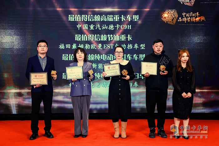 而在卡車領(lǐng)域,中國(guó)重汽汕德卡C9H、福田戴姆勒歐曼EST自動(dòng)擋車型、宇通新能源牽引車和格力鈦純電動(dòng)路面洗掃車分別榮膺“最值得信賴高端重卡車型”“最值得信賴節(jié)油重卡”“最值得信賴純電動(dòng)牽引車車型”和“最值得信賴純電動(dòng)路面洗掃車”榮譽(yù)稱號(hào);中國(guó)重汽HOWO新能源輕卡、宇通輕卡、中車電動(dòng)物流車XC45和福田全新一代歐馬可S1超級(jí)輕卡則分別斬獲“最值得信賴新能源輕卡”“產(chǎn)品金口碑獎(jiǎng)”“最受歡迎輕卡車型”以及“藍(lán)牌城配運(yùn)輸首選車型”獎(jiǎng)項(xiàng)。
