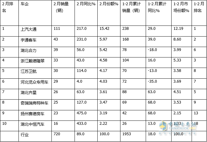 總之,無論是2023年2月還是1-2月,上汽大通、宇通客車均奪得房車行業(yè)冠、亞軍。