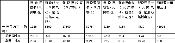 總之,輕客領(lǐng)跑,皮卡領(lǐng)漲是今年一季度新能源專用車市場(chǎng)的一個(gè)顯著特點(diǎn)。