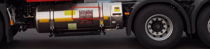 配圖中可以清晰的看到,整車后背CNG氣瓶,外殼印有“東風(fēng)暢行”和“CNG”字樣;兩側(cè)則是LNG儲(chǔ)罐,放大之后可以看到“液化天然氣(LNG)”標(biāo)識(shí)。