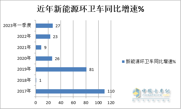 根據(jù)觀研天下數(shù)據(jù),20217年—2022年新能源環(huán)衛(wèi)車同比增速如截圖1,而2023年一季度新能源環(huán)衛(wèi)車同比增速為27%。