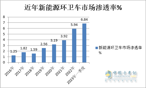 五、一季度新能源環(huán)衛(wèi)車市場(chǎng)滲透率創(chuàng)近年新高