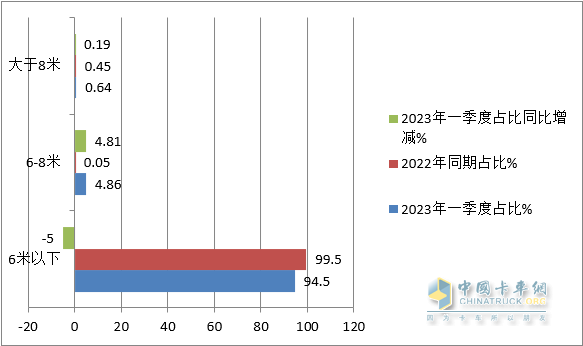 特點二:6米以下車型占主體,但主體地位同比減弱;6-8米段表現(xiàn)搶眼