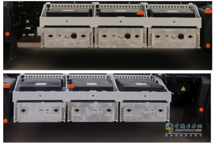 這款車的一個看點在于兩側(cè)的電池放置方式。如下圖所示,電池可以像被“切豆腐”一般放入兩側(cè)的電池卡槽之中。目測看,一邊有三個卡槽,兩邊總計6個。