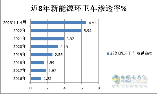 五、前4月新能源環(huán)衛(wèi)車市場(chǎng)滲透率刷新歷史記錄