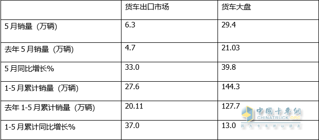 截圖1,2023年5月及1-5月我國貨車出口及同比(來源:中國汽車流通協(xié)會)
