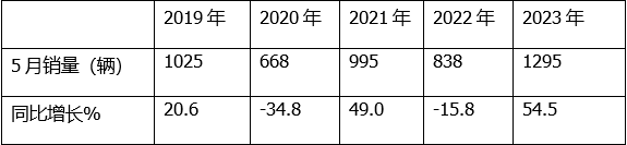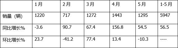 三、同比增55%環(huán)比降10.3%,銷量居今年1-5月各月第二