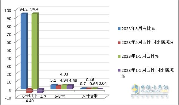 四:6米以下車型占比超9成領(lǐng)跑;6-8米車型領(lǐng)漲