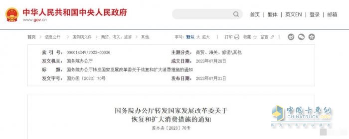 2023年7月31日,國務(wù)院轉(zhuǎn)發(fā)國家發(fā)改委《關(guān)于恢復(fù)和擴大消費的措施》的通知。