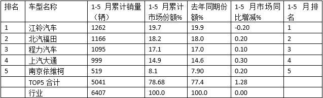 特點六、江鈴、福田、程力居前三;TOP5累計占比近8成