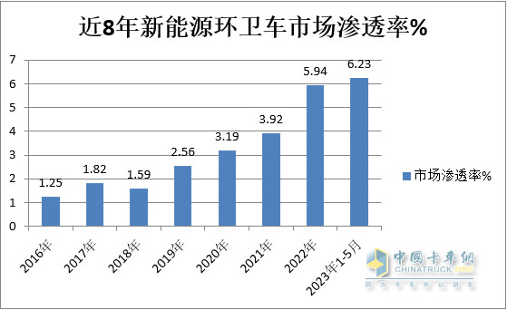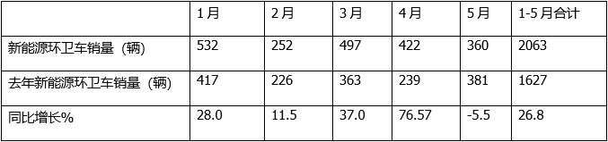 五、前5月新能源環(huán)衛(wèi)車市場(chǎng)滲透率創(chuàng)歷史新高