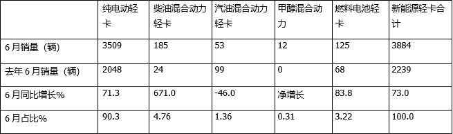 總之,柴油混動輕卡暴漲6.7倍領(lǐng)漲;純電動占比超9成領(lǐng)跑”是今年6月新能源輕卡市場的一個明顯特點。