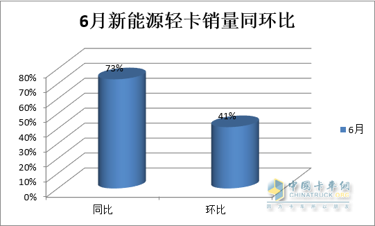 一是去年同期銷量受疫情影響基數(shù)較低,導(dǎo)致今年6月新能源輕卡銷量同比增長提供了機遇;
