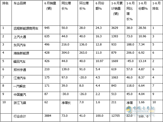 特點四:6月遠程、大通、東風(fēng)居前三;1-6月遠程、福田、大通居前三