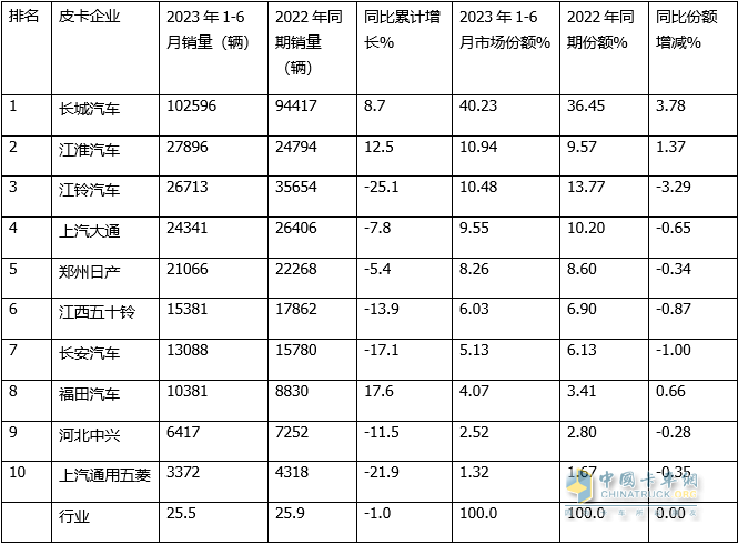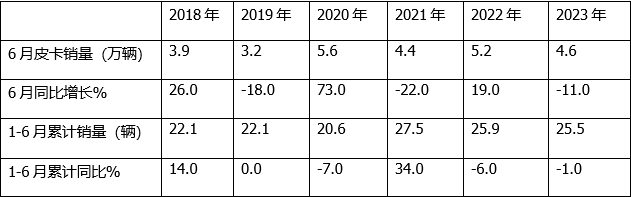 那么,2023年6月及1-6月皮卡市場有哪些主要特點?
