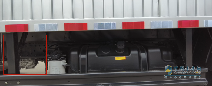 這一點(diǎn),筆者要為奧鈴玉兔Ⅲ點(diǎn)贊。從大梁兩側(cè)可以看出,電瓶和尿素管集成在了一起,油箱和濾清器也集成在了一起,預(yù)留出的空間用戶可以加裝工具箱,而且不占額外空間。