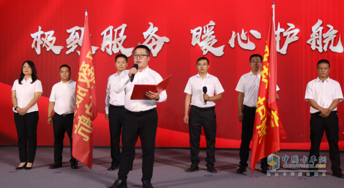 對(duì)于青汽而言,新品上市的同時(shí)意味著服務(wù)的開始。為了向廣大用戶傳遞出青汽客戶至上的理念,解放青汽中重型車銷售公司河北地區(qū)部服務(wù)經(jīng)理李京芾攜備品商、服務(wù)站代表登臺(tái)進(jìn)行了服務(wù)承諾,擲地有聲的誓言,讓廣大用戶更堅(jiān)定了選擇青汽車的決心。