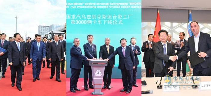 中國重汽與烏茲別克斯坦最大的汽車制造商烏茲別克汽車公司的合資工廠第3000輛中國重汽重卡舉行下線儀式。