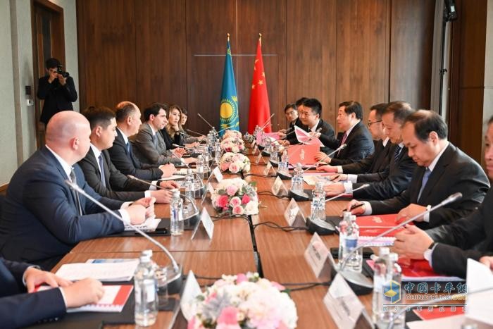 譚旭光與哈薩克斯坦最大的汽車生產(chǎn)和銷售服務(wù)商阿魯爾集團董事長拉夫連季耶夫·安德烈舉行會談,雙方就推進全方位合作達成共識。