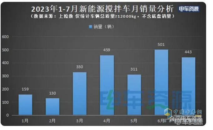 終端上牌數(shù)據(jù)顯示,2023年 7月新能源攪拌車銷售443輛,同比去年7月的229輛增長93.45%,領漲今年7月新能源重卡大盤;2023年1-7月新能源攪拌車累計銷售2333輛,同比去年1-7月的896輛大漲160.4%,領漲1-7月新能源重卡大盤。
