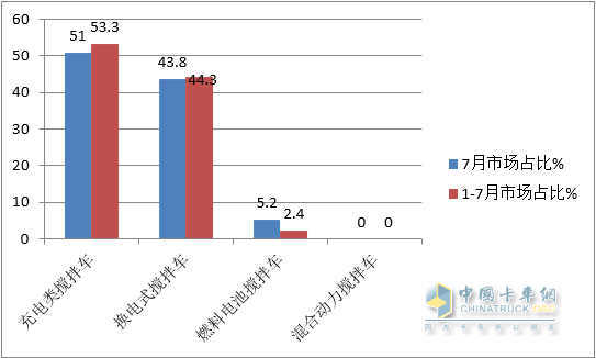 特征二:無論7月還是1-7月,充電類攪拌車占比均超5成領跑