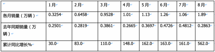 一是去年同期燃?xì)鈨r(jià)格一直較高,導(dǎo)致了去年8月銷量基數(shù)不高(只有2863輛),給今年8月的同比暴漲提供了支持。