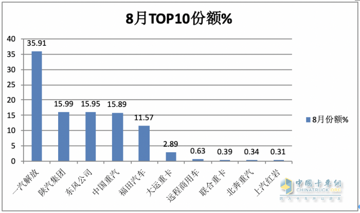 ----top10市場份額同比6增4降,其中增加最多的東風(fēng)汽車,表現(xiàn)最搶眼;減少最多的是重汽。