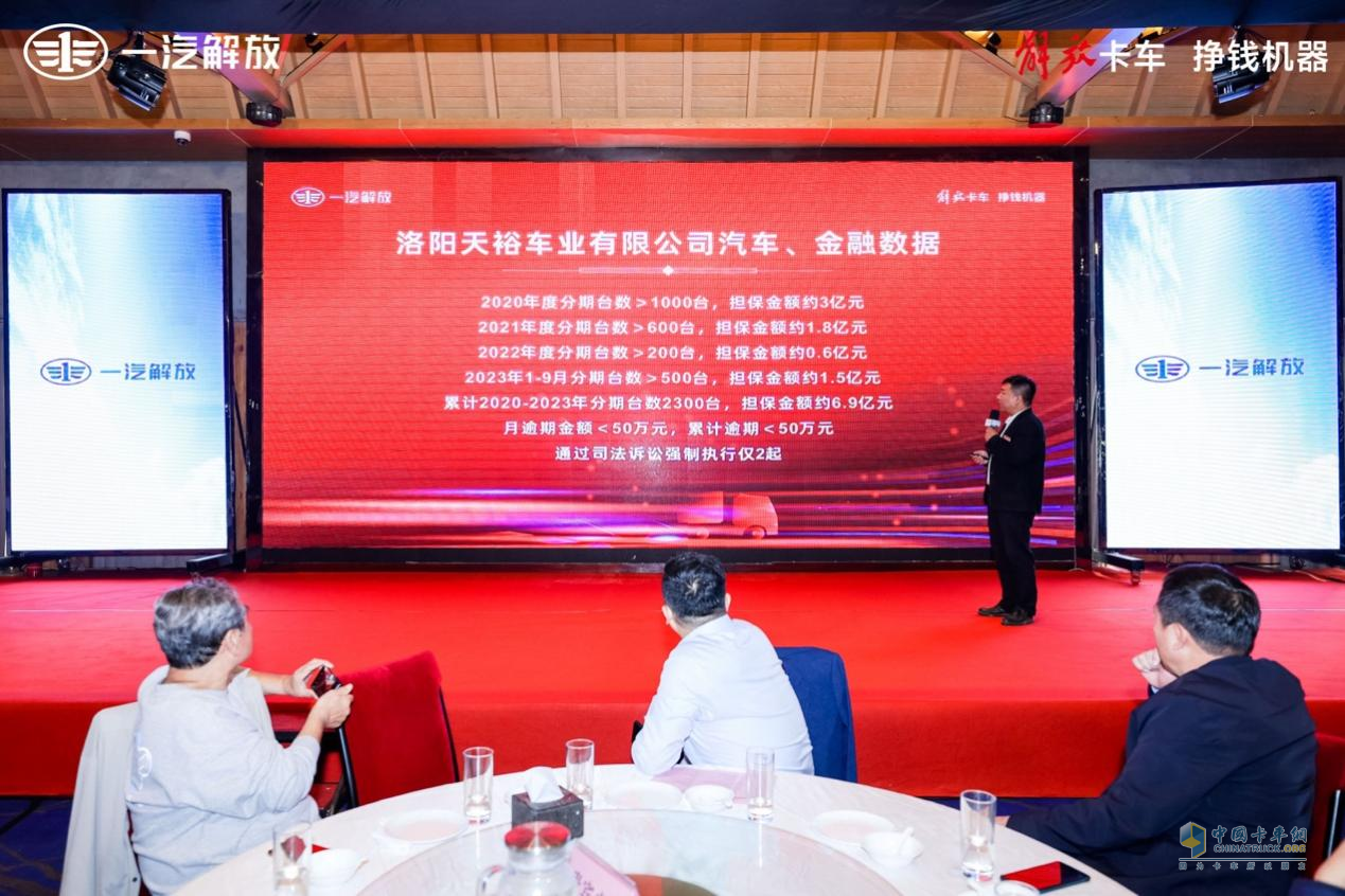 發(fā)布會上,一汽解放青島中重型車銷售公司河南地區(qū)部營銷經(jīng)理韓向林向所有嘉賓進(jìn)行詳細(xì)的產(chǎn)品介紹和推介。