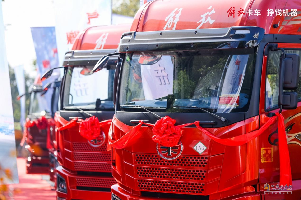 截至目前,解放青汽國六燃?xì)廛嚴(yán)塾?jì)銷量已經(jīng)突破10萬輛,今年1-8月,銷量已超過2萬輛,市場份額達(dá)32.5%,9月份更是達(dá)成單月產(chǎn)銷過萬輛的壯舉,穩(wěn)居行業(yè)第一的位置。在活動上,解放青汽又帶來了全新JH6 LNG 560馬力、JH5 LNG 510馬力等牽引車,在舒適、科技、動力、增效、服務(wù)等方面的進(jìn)行了全面升級。