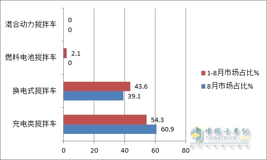 特征二:無(wú)論8月還是1-8月,充電類攪拌車占比均超半壁江山,均占主體地位