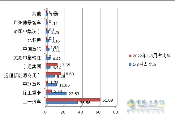 特征一:無(wú)論是8月還是1-8月均領(lǐng)漲新能源重卡大盤(pán)